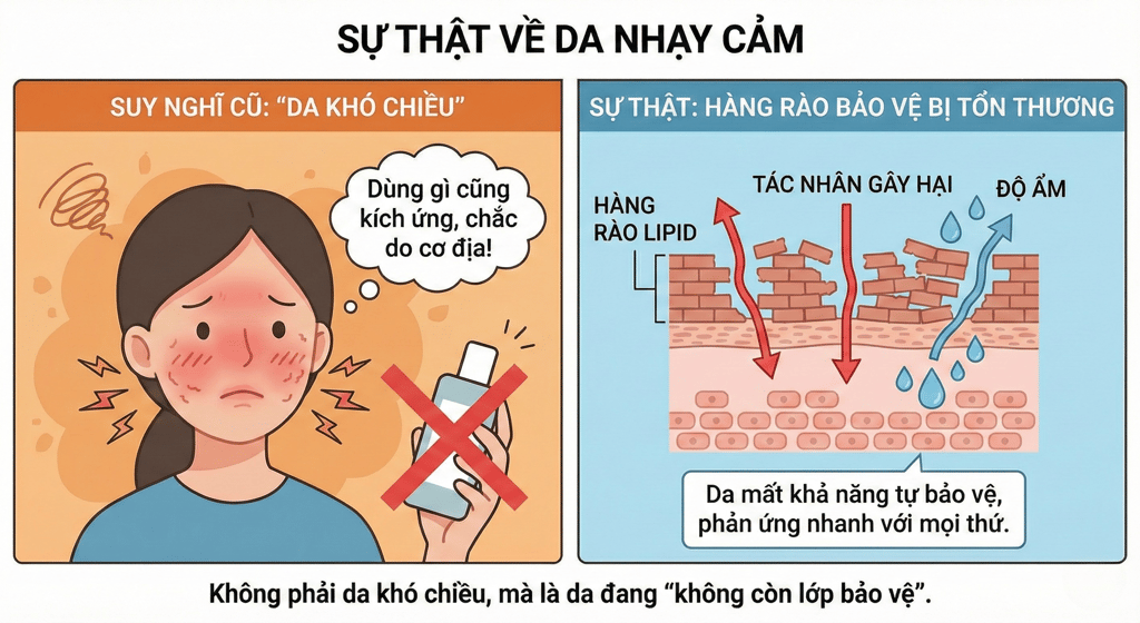 Không phải da khó chiều, mà là da đang “không còn lớp bảo vệ”.