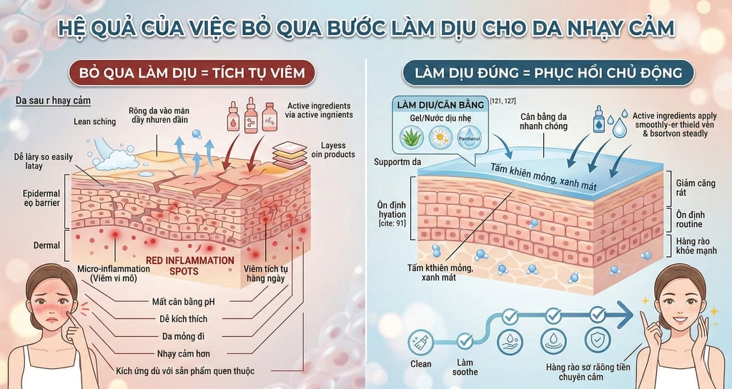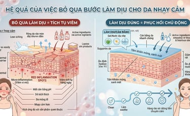 👉 Với da nhạy cảm, bước làm dịu sau làm sạch chính là “nút thắt” quyết định cả routine có hiệu quả hay không.