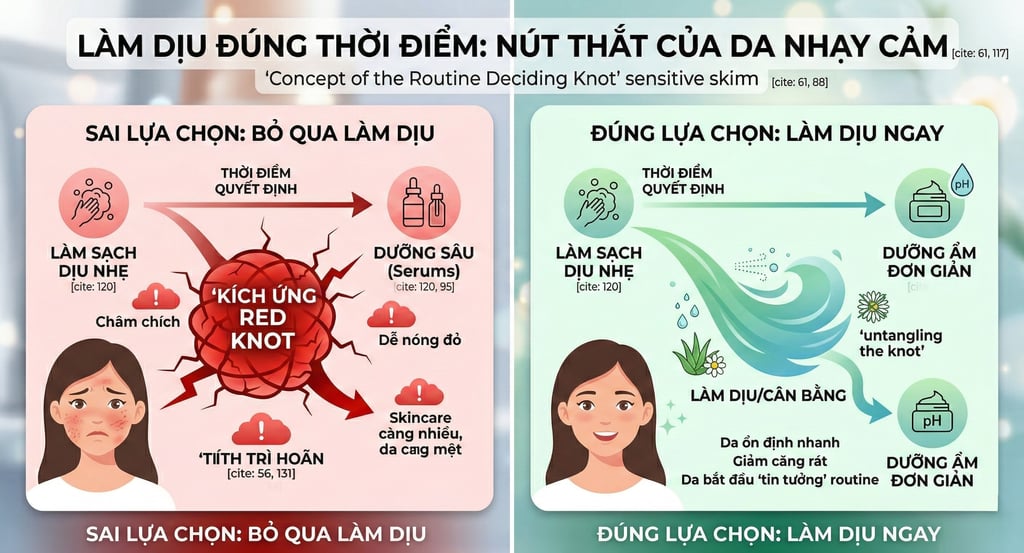 Nhưng với da nhạy cảm, đây là thời điểm da yếu nhất trong cả routine.
