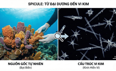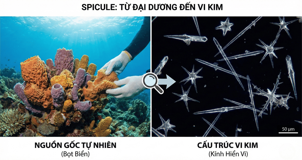Spicule là các vi kim sinh học có nguồn gốc tự nhiên, thường được chiết xuất từ bọt biển biển (Sponge).