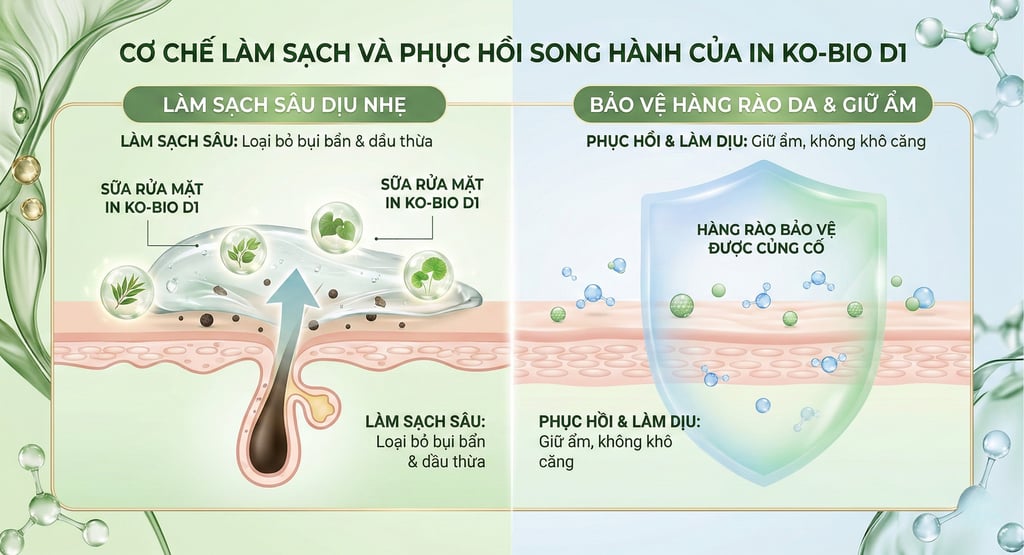IN KO-BIO lựa chọn hướng đi khác: đưa hệ thảo dược có hoạt tính sinh học vào sữa rửa mặt D1, nhằm tạo ra một bước làm sạch vừa hiệu quả, vừa hỗ trợ phục hồi da ngay từ nền móng.