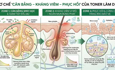 Bài viết này sẽ giúp bạn hiểu toner làm dịu da hoạt động như thế nào trên da dầu mụn, xét trên cơ chế sinh học, không chỉ dừng ở mô tả công dụng.