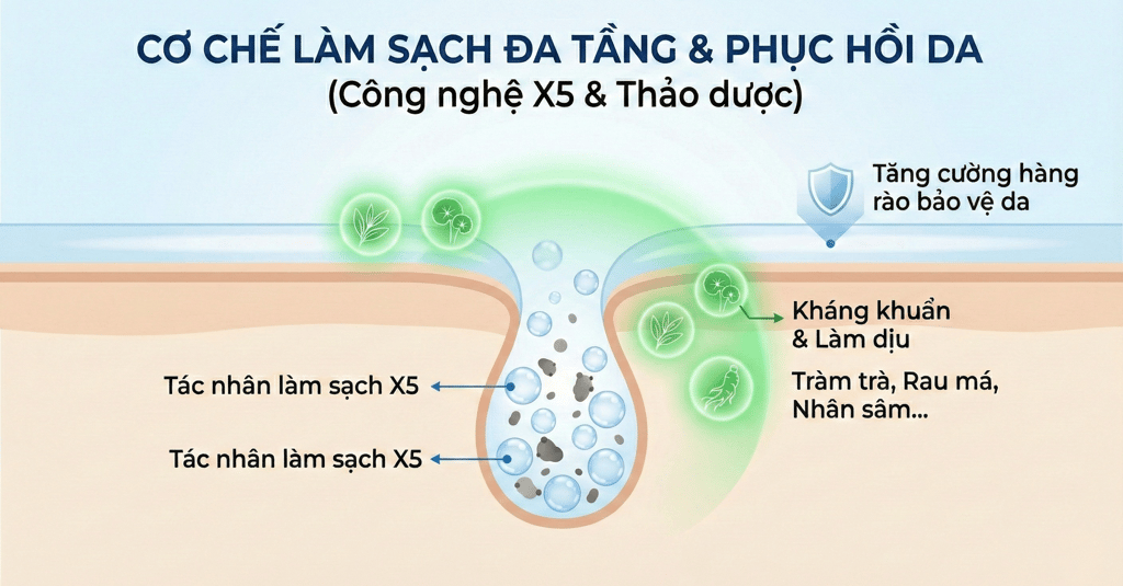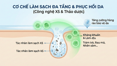 Làm sạch đa tầng, từ bề mặt đến sâu trong lỗ chân lông